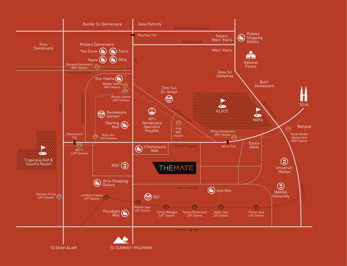 Situated in the heart of Damansara, The Mate is conveniently surrounded by commercial hubs and accessible highways.